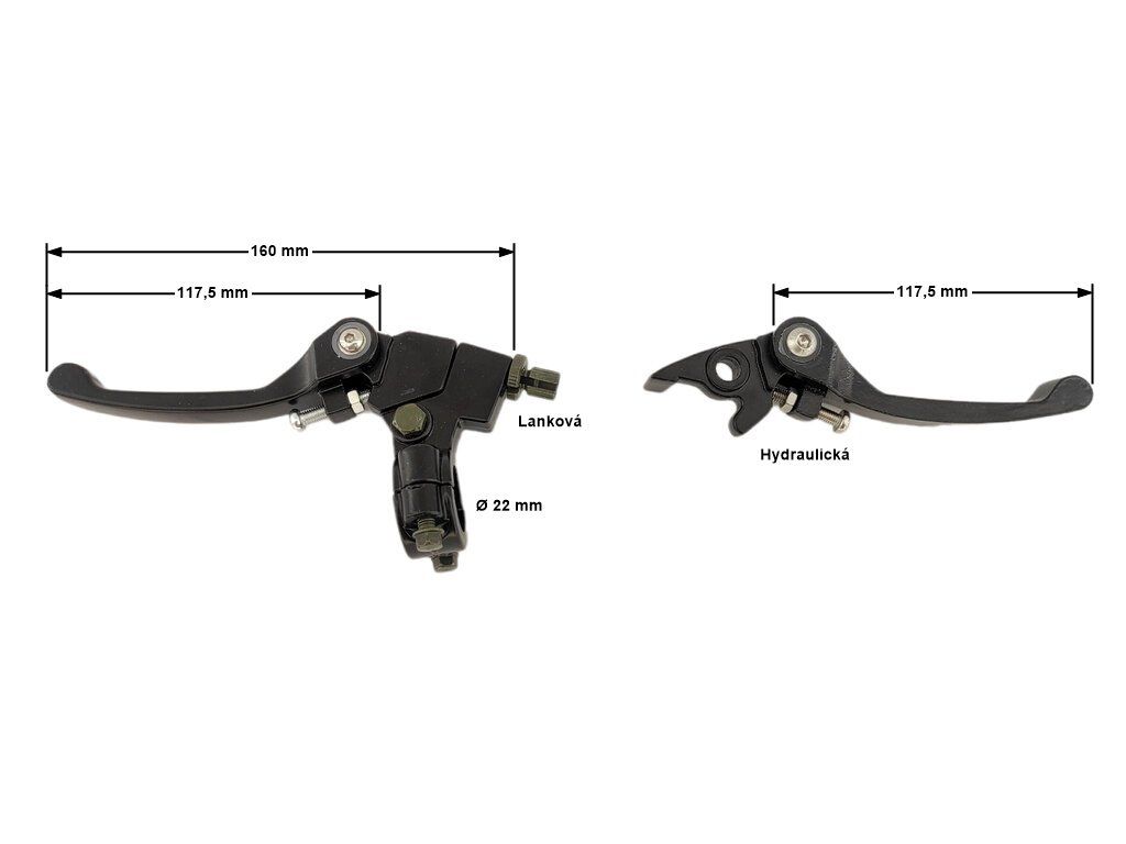 Brzdová a spojková páčka - nastavitelná/sklopná - černá