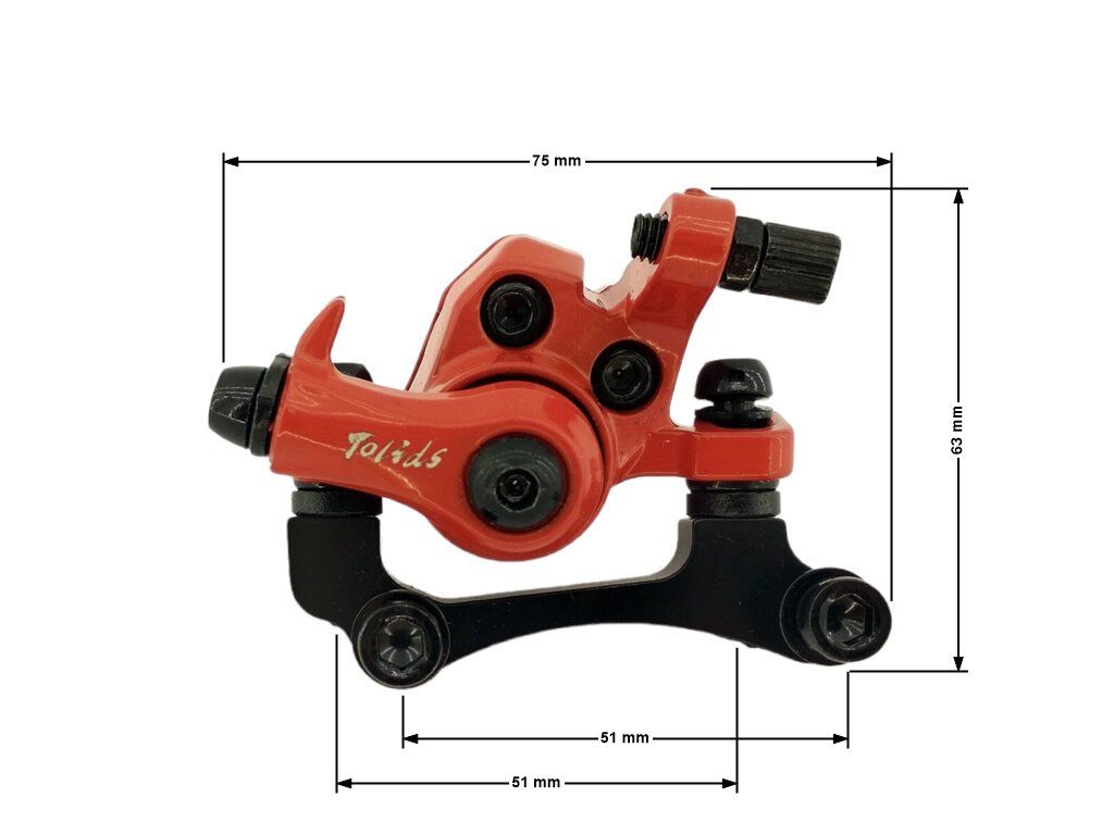 Brzdový třmen mini - přední Přední brzdový třmen pro minibiky a dětské čtyřkolky včetně obložení. Rychlá výměna, spolehlivé brzdění a univerzální použití.