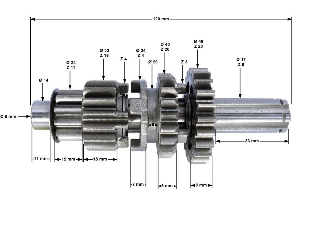 Sekundární hřídel ozubení převodovky Pitbike - 14mm