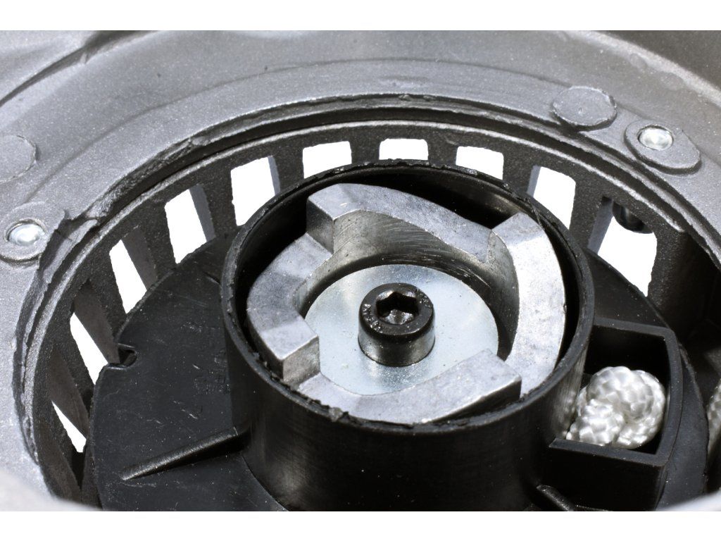 - Manuální systém: Při natahování šňůry se vysouvá šnek, který zapadá do ozubení na rotoru a umožňuje efektivní a bezpečný start motoru.
