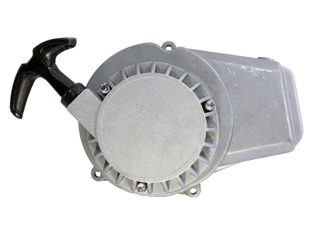Startér minibike hliníkový – stříbrný je robustní a spolehlivý manuální startér určený pro všechny běžné minibiky s dvoutaktním motorem. Vyznačuje se pevnou hliníkovou konstrukcí a elegantním stříbrným/šedým designem, který zaručuje dlouhou životnost i v náročných podmínkách.