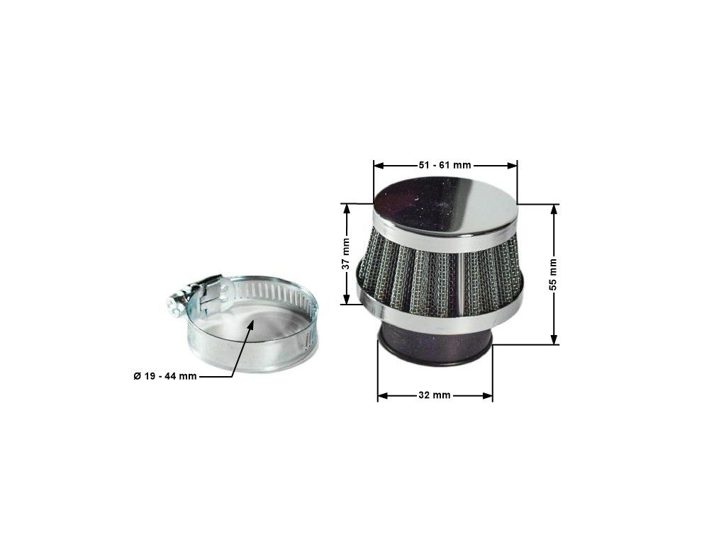 Vzduchový filtr 32mm - nízký CHROM