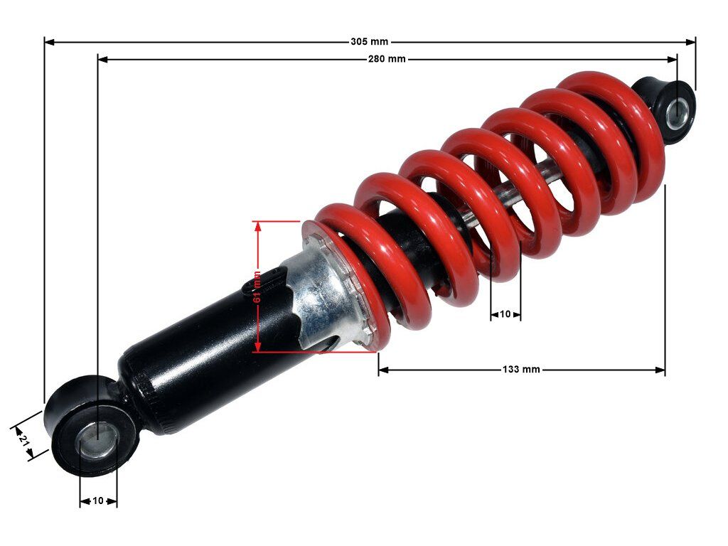 Zadní tlumič - 280x10mm - červený